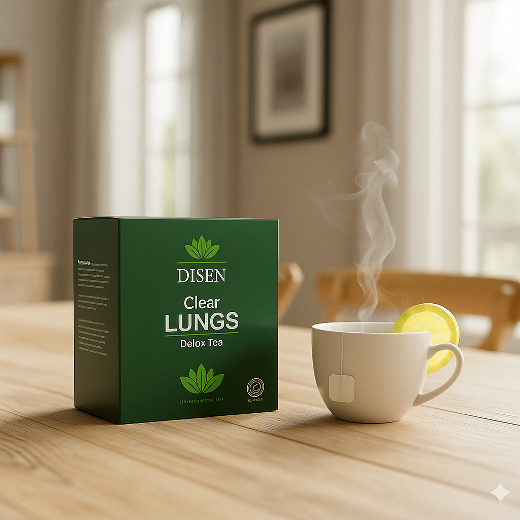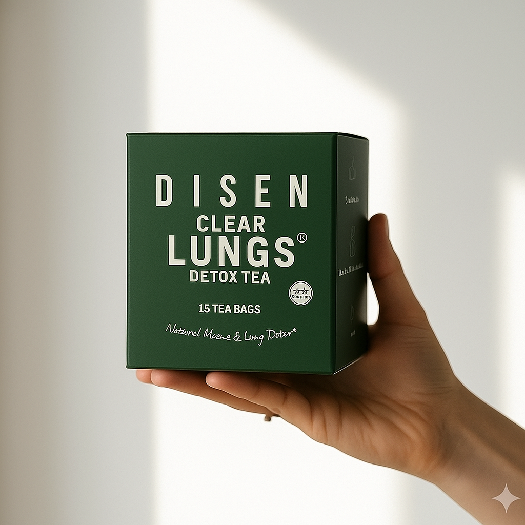 Discover the soothing power of DISEN Clear Lungs Detox Tea. Crafted with mullein leaf and herbal botanicals to clear mucus, support lung detox, and promote easier breathing every day. Perfect for mornings, evenings, or anytime you want refreshing comfort